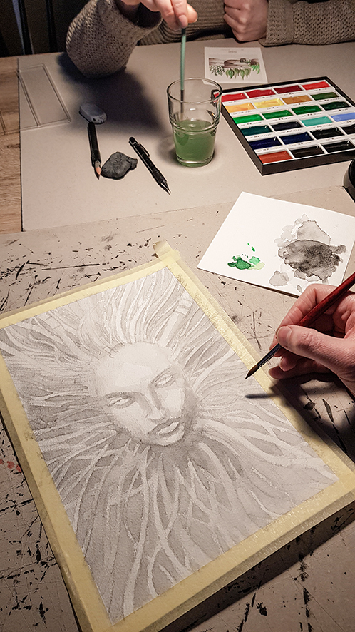 Dawno nie miałem okazji skonfrontować się ze swoim nemezis - akwarelami. Okazja pojawiła się przy rysunku na zamówienie przedstawiającym Shodan z System Shock.